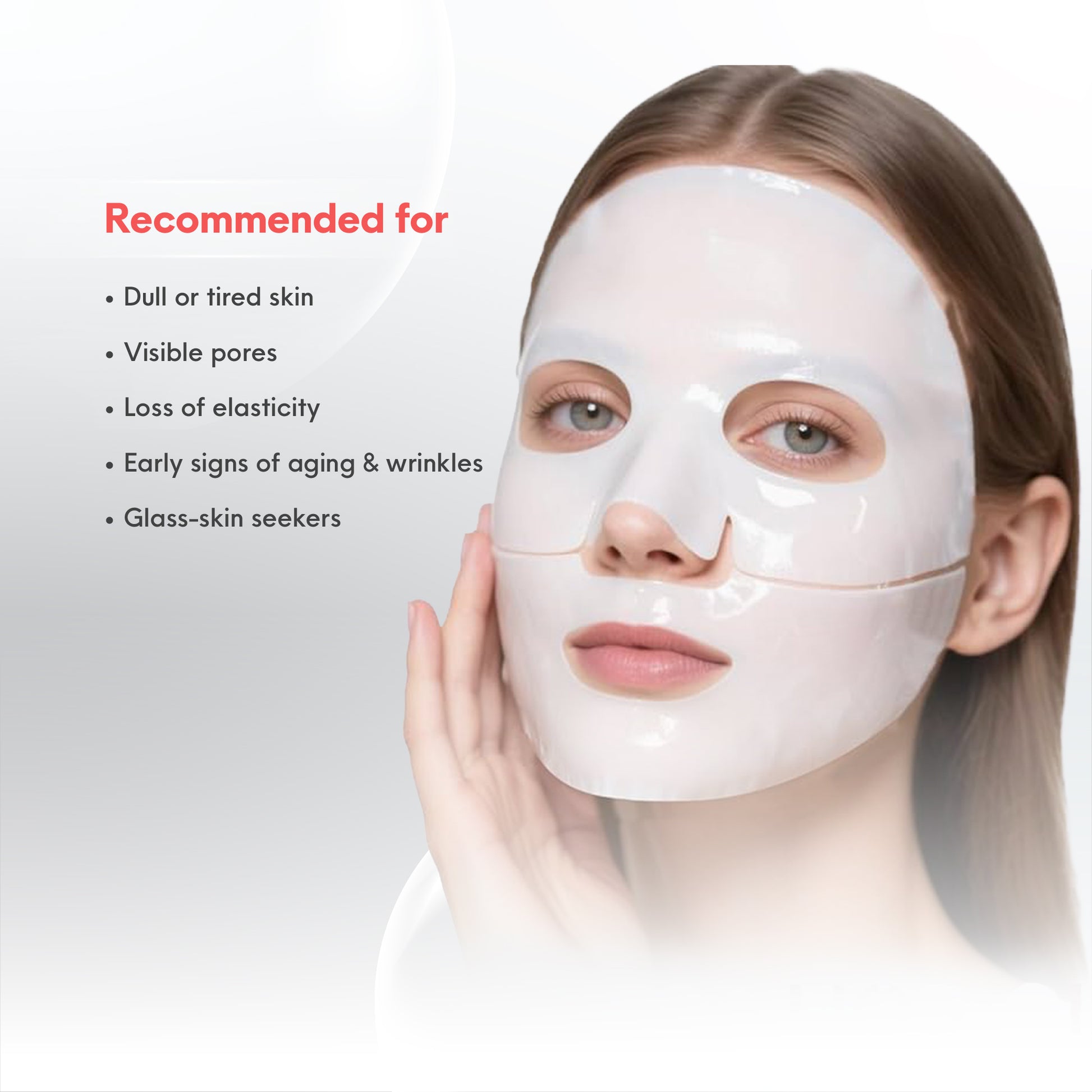 Sheallures™ bio-cellulose design melts seamlessly into your skin with 34g of ultra-refined collagen peptides and ceramides that hydrate, smooth, and visibly perfect from within.